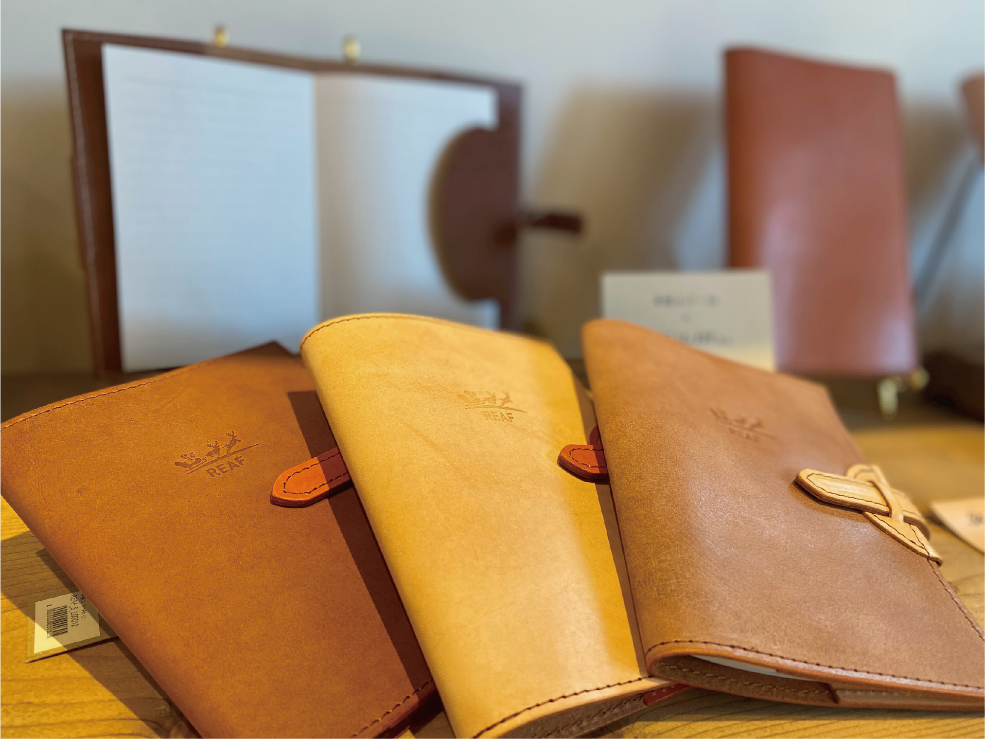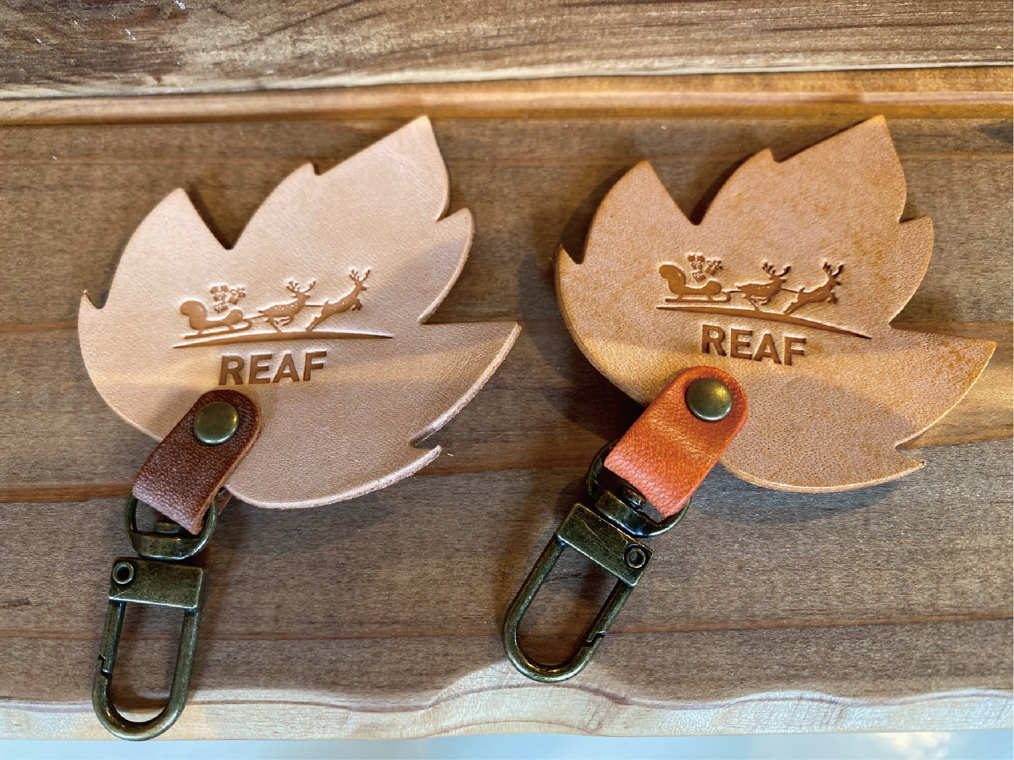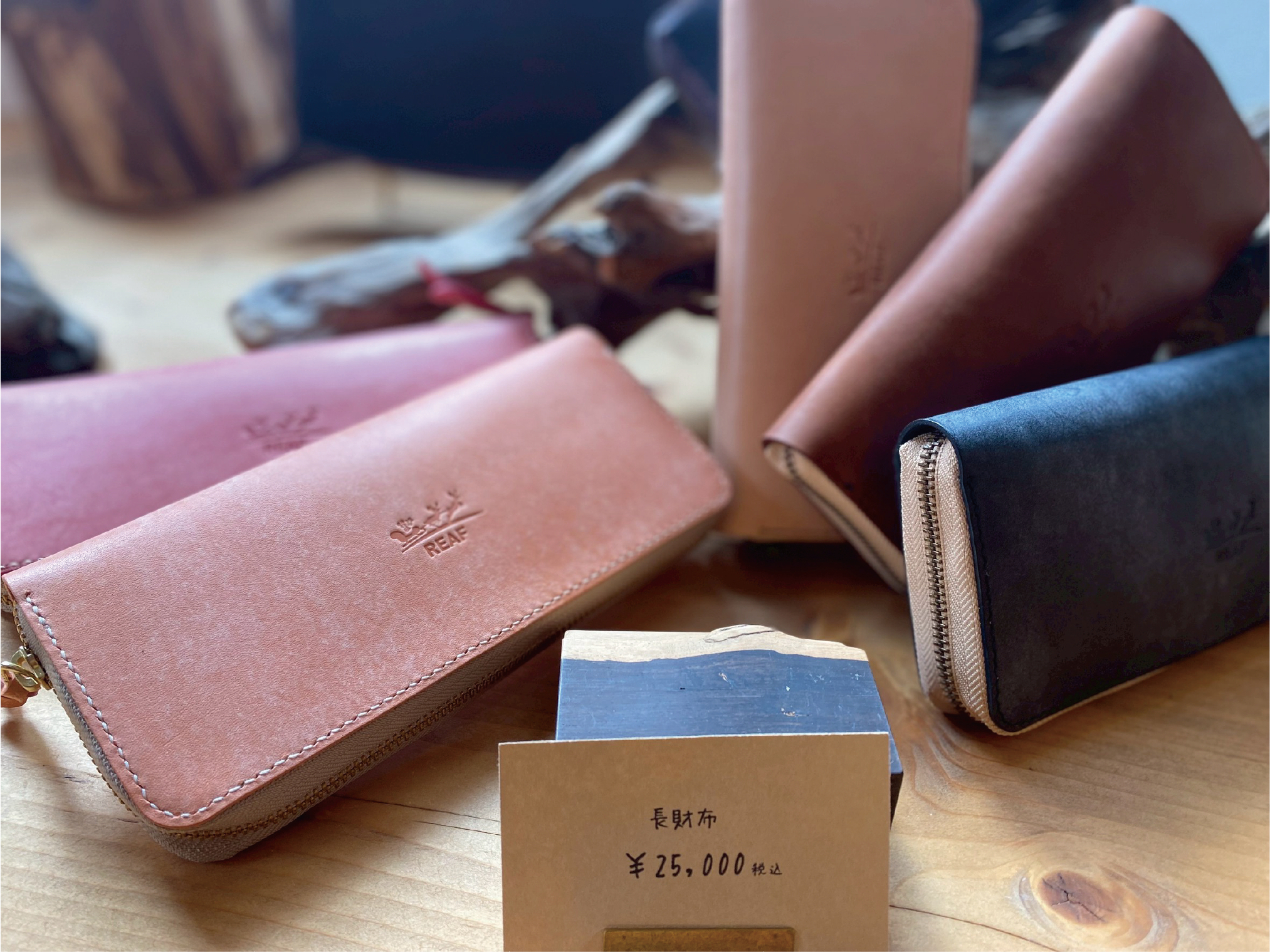 お越し頂いた皆様に自然豊かな環境の中で、木や革などの自然素材を活用したクラフト製品に触れていただける場所をご用意しました。それがREAF SHOPです。